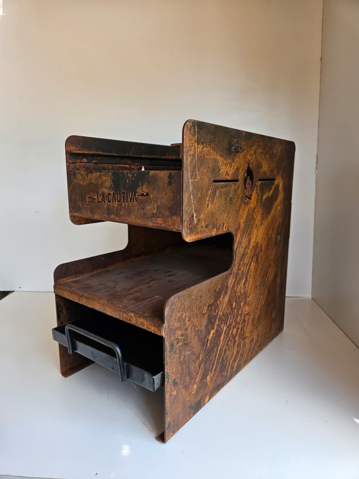 Brasero Moscú está realizado en su totalidad en chapa de 3,2 mm. Y hierro del 14. Tiene realizado un proceso de oxidación sellado con laca. Es reconocido por ser multifunción.