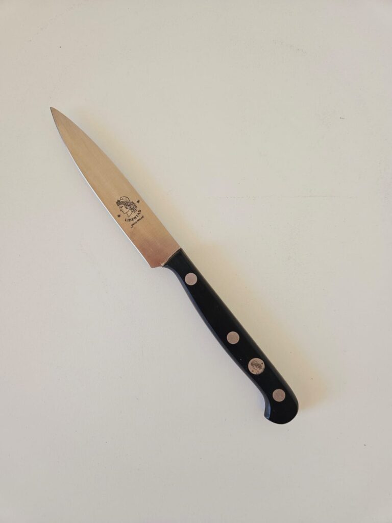 Cuchillo de punta. Marca Libertad. Las cachas de los mangos son de Polioximetileno (POM), muy resistentes e indeformable a temperaturas extremas.