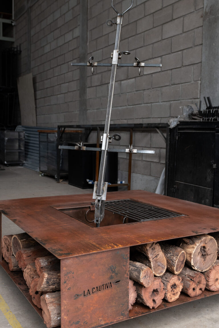 – Estaca regulable con sistema de ganchos con regulador para anexar al fogonero. Acero negro. Medida: altura 125cm