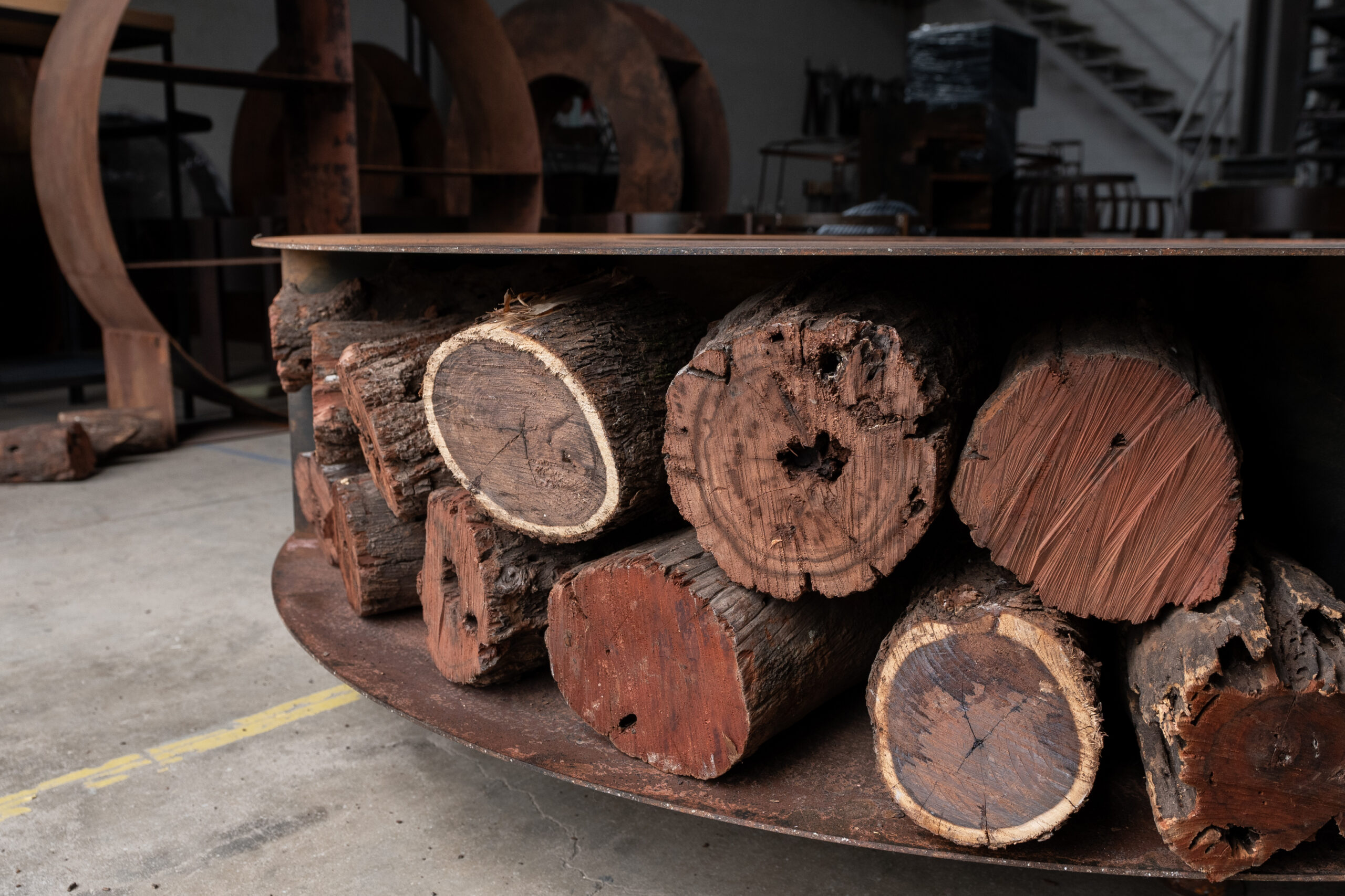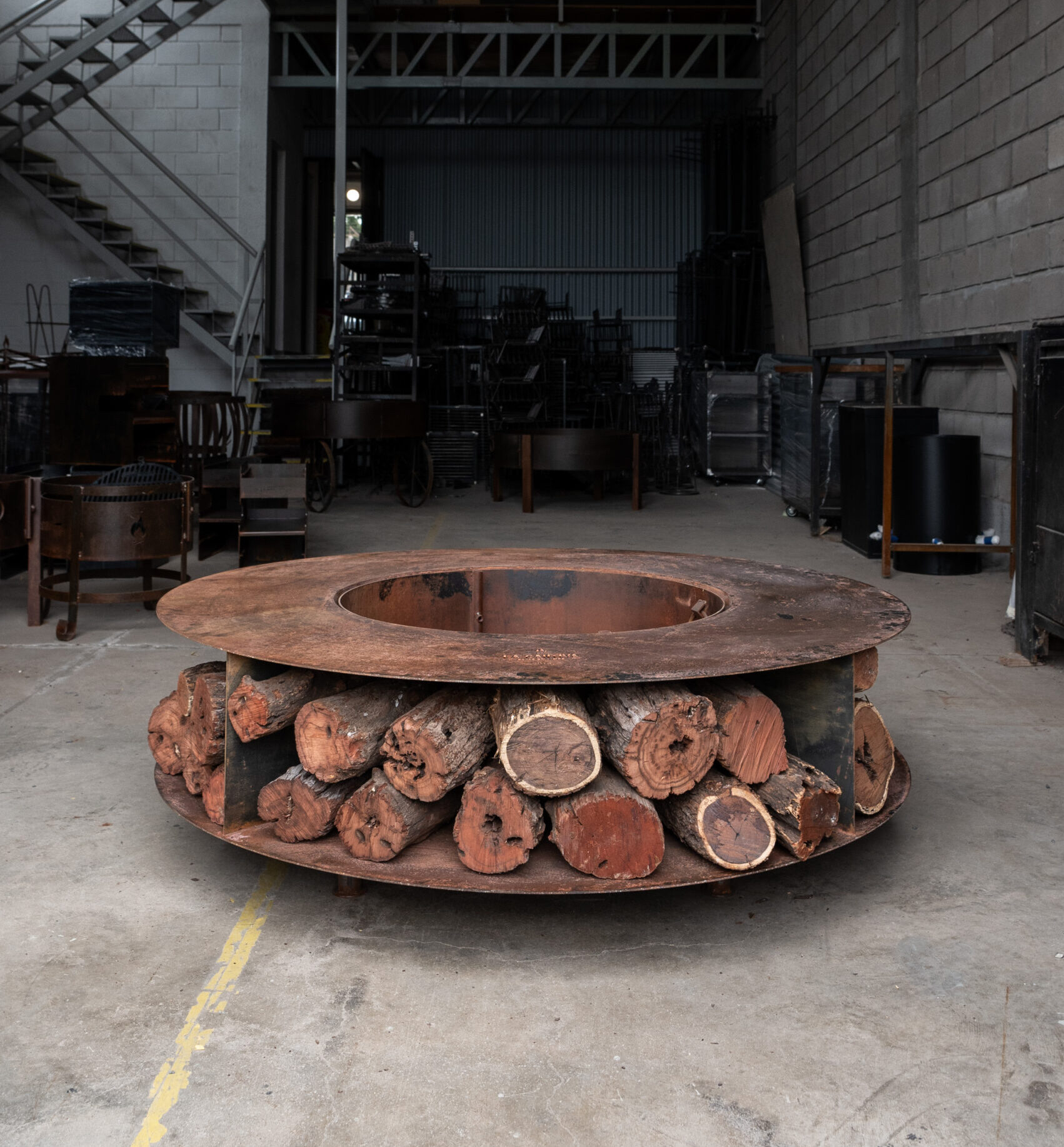 Tokio es tremendo. Es un fogón circular con una chapa gruesa de 3,2mm de espesor. Te sirve de leñero, mesa y fogón a la vez.
