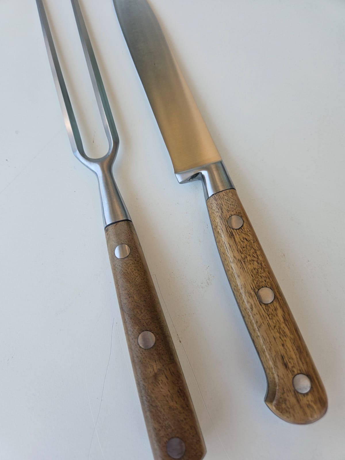 Juego de cubiertos para asado. Hojas de acero inoxidable y mango de madera de acacia.