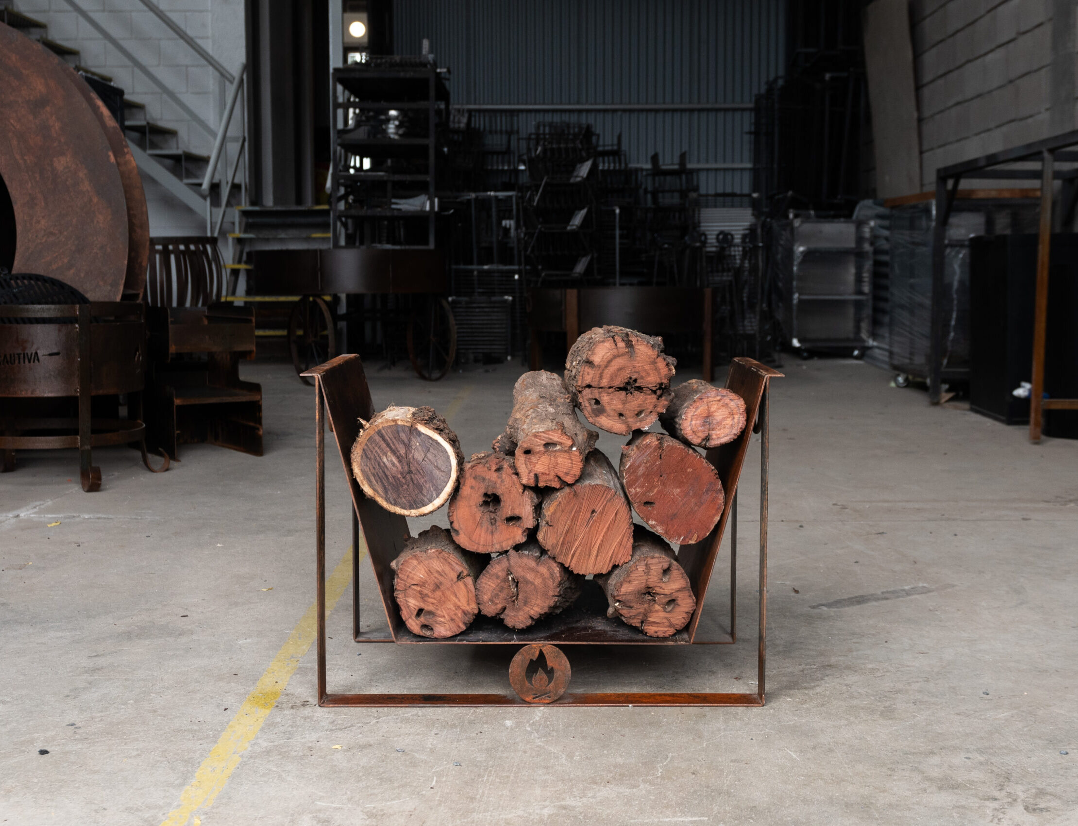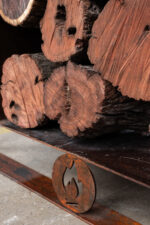 Leñero en chapa oxidada para almacenar leña. Chapa 2.5 mm de espesor.