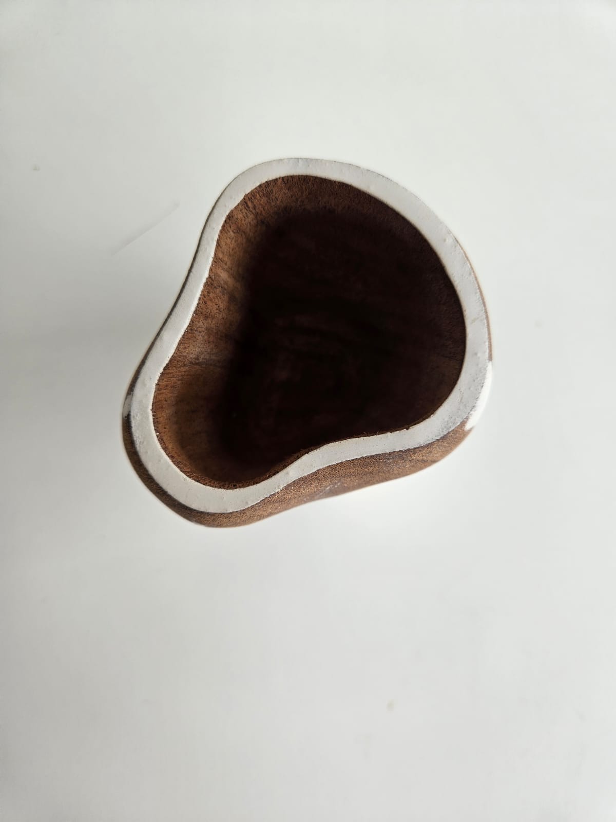 Mate modelo Cervantes X confeccionado en madera de algarrobo, terminación natural y pintada de blanco.