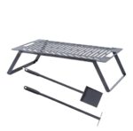 Parrilla de chapa 2.5 cortada a láser con patas plegables + juego de asador básico. Solución completa para tus escapadas.