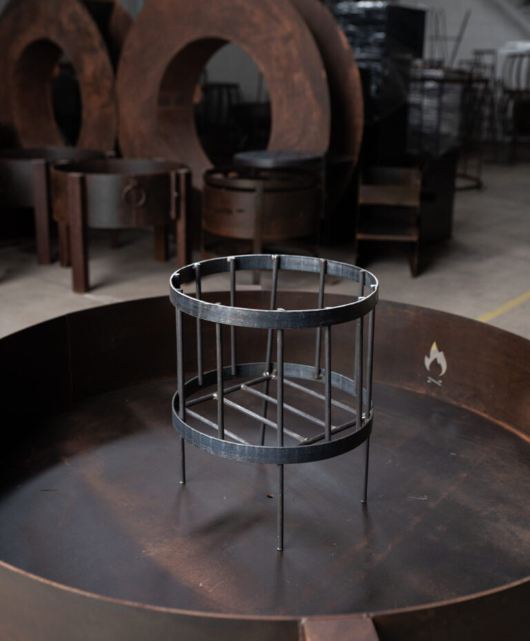 Plancha redonda fabricada en chapa de 3,2mm con un borde de 2,5cm.